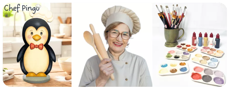 1 dia de aula prática para você criar um lindo pingüim de geladeira em pintura country